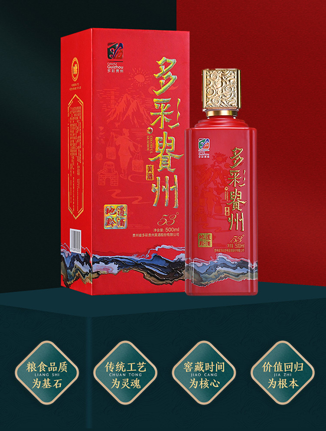 多彩貴州酒產于貴州茅臺鎮,以本地優質糯高粱、小麥、水為原料,利用得天獨厚的自然微生物環境,遵循具有悠久歷史的傳統工藝精釀而成,并由大師級團隊精選、勾調、品評,認定;融合了“釀造、文化、品牌、自信”等多彩元素。
